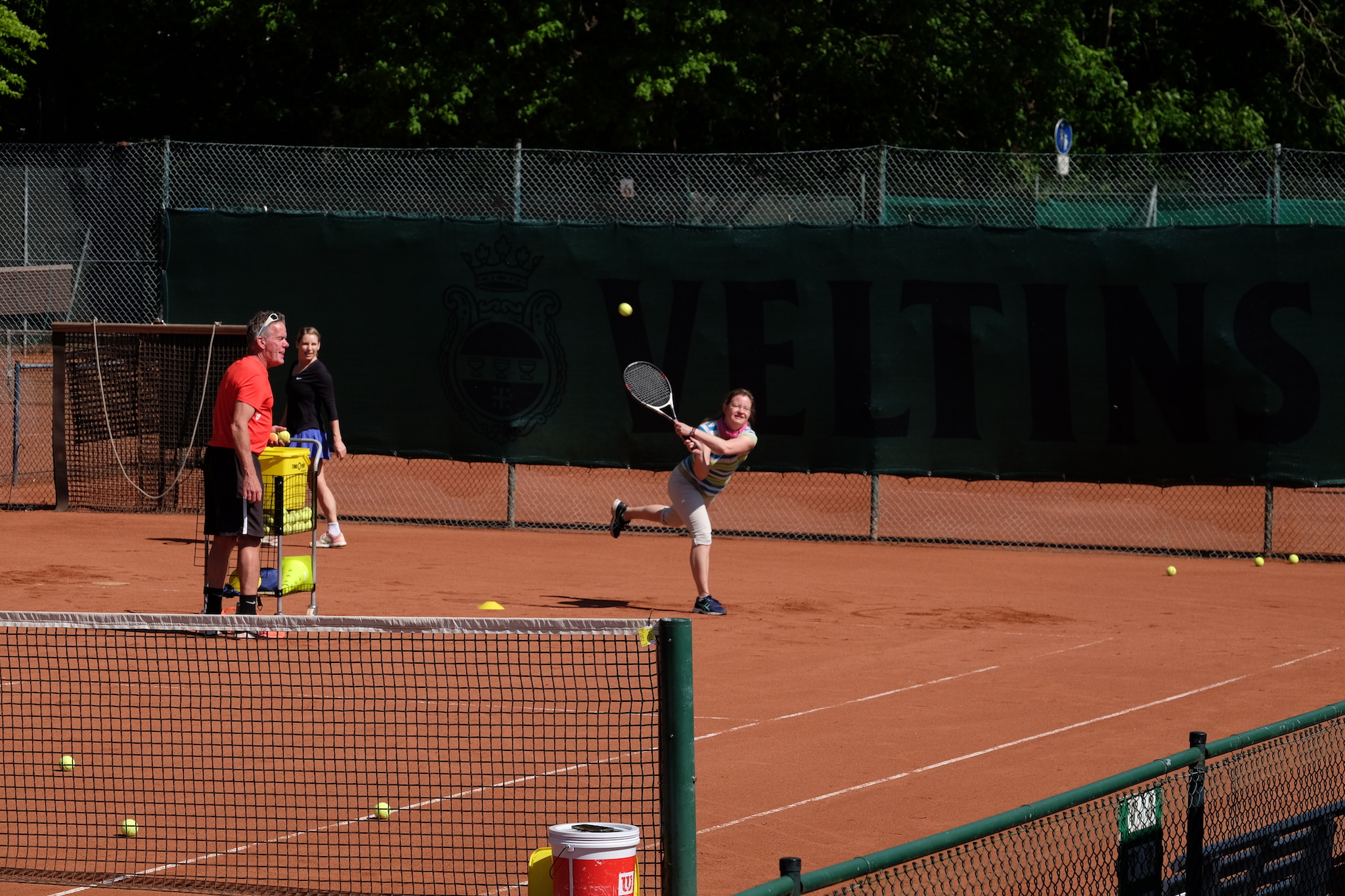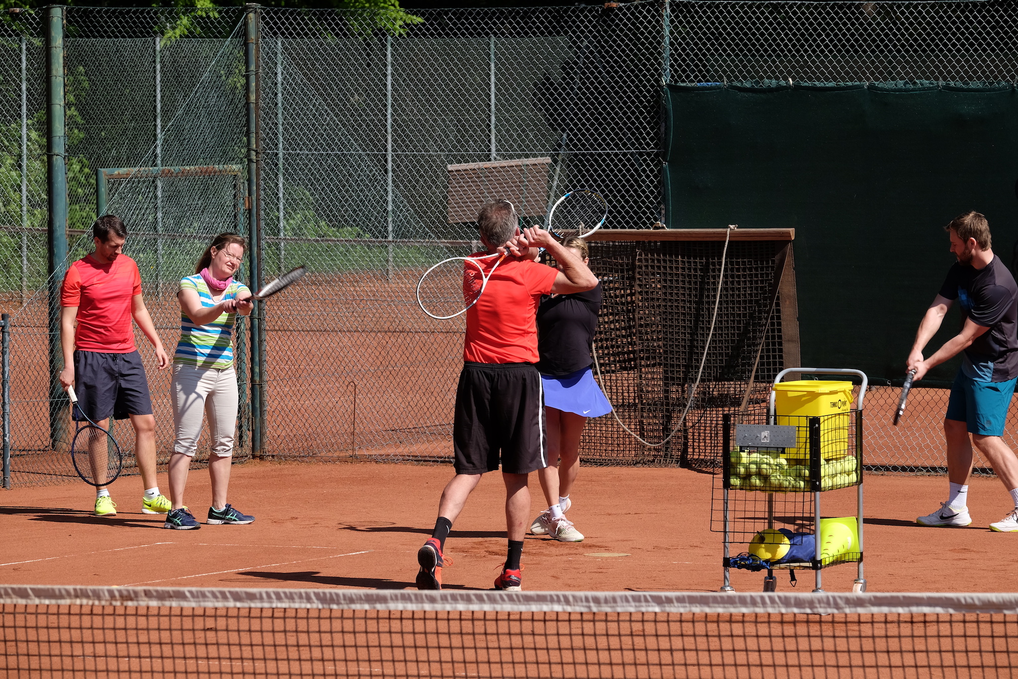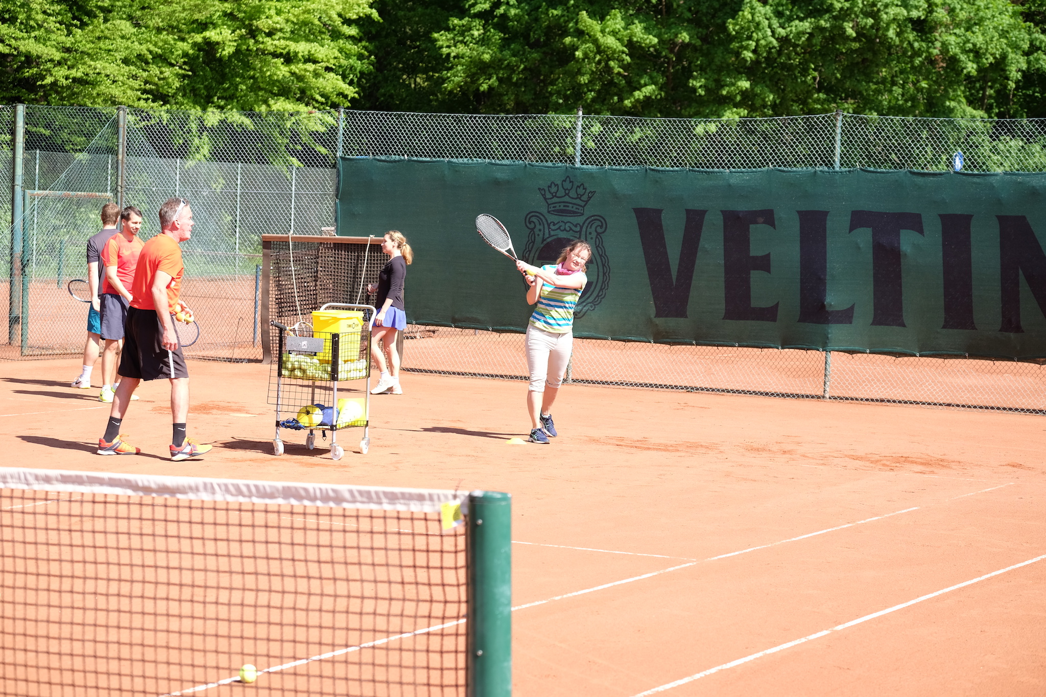 Aber auch einige Erwachsene nutzten die Gelegenheit zum Schnuppern und probierten unter Anleitung von Trainer Chris Wittenberg die Grundschläge. Auch sie hatten viel Spaß und schon einige Erfolgserlebnisse. Einige Teilnehmer nahmen anschließend sogar am Eröffnungsturnier teil.